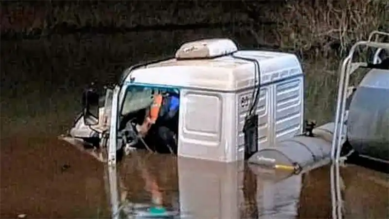 Camión se despistó en Ruta 14, cayó de un puente y quedó en el río Gualeguaychú