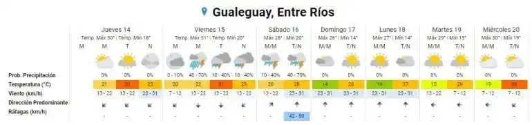 El área será afectada por lluvias y tormentas, algunas fuertes, indica el El pronóstico en Entre Ríos