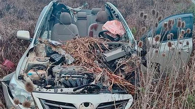 Al llegar al lugar los efectivos se encuentran con un automóvil marca Toyota modelo Corolla sobre la banquina y como consecuencia del despiste el auto había perdido el techo.