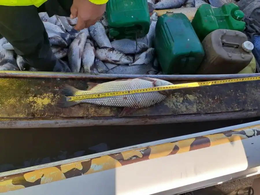 Esto dio lugar a que se secuestraran aprox. 600 mts de mallas; se procedio al decomiso de aprox 400 kg de pescado distintas especies y medidas no permitidas con liberacion de mas de 250 ejemplares vivos que al momento de los controles se encontraban en las redes que se estaban levantando.